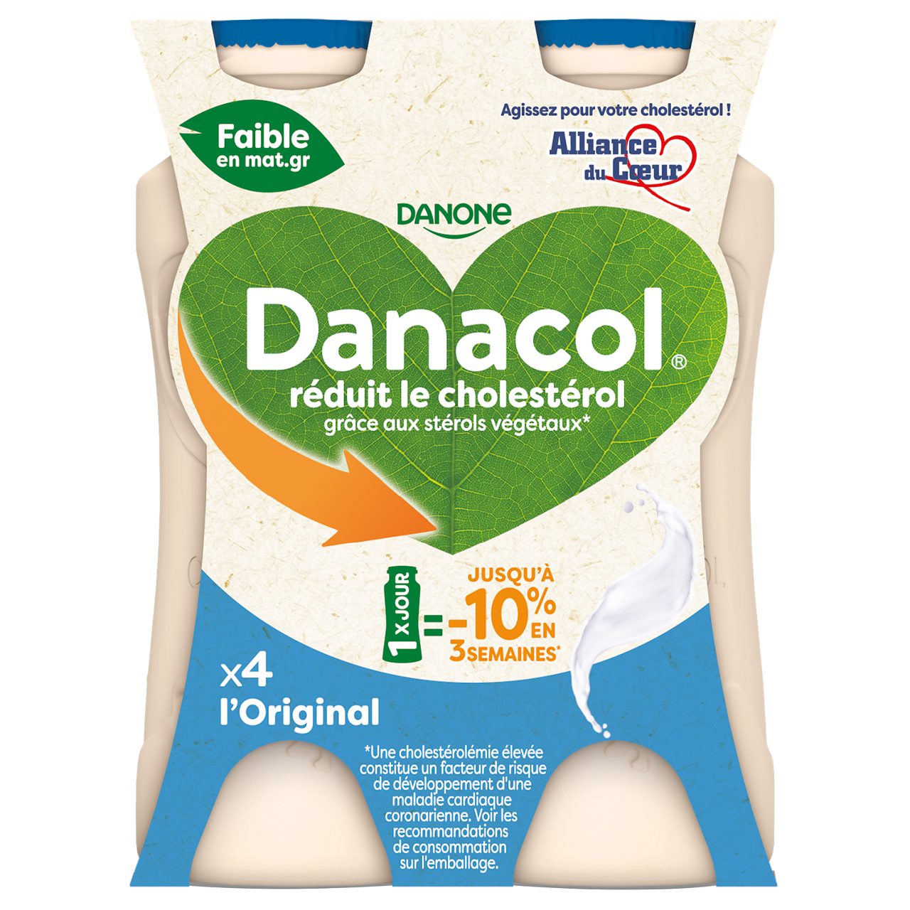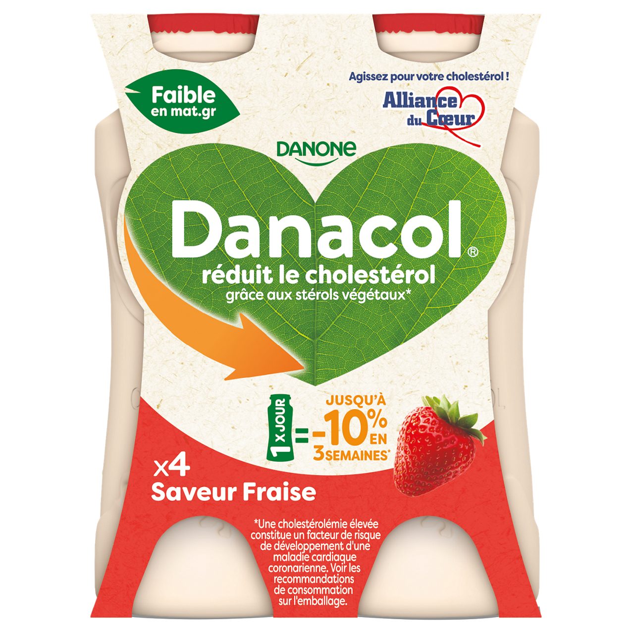 Danacol est une spécialité laitière dont l’effet sur la réduction du cholestérol, grâce aux stérols végétaux, est scientifiquement prouvé*. Avec une bouteille par jour qui apporte 1,6g de phytostérols, vous pouvez réduire jusqu’à 10% votre taux de cholestérol en seulement 3 semaines* de consommation. L’effet se maintient grâce à une consommation quotidienne de stérols végétaux et sa recette est faible en matières grasses et riche en protéines.