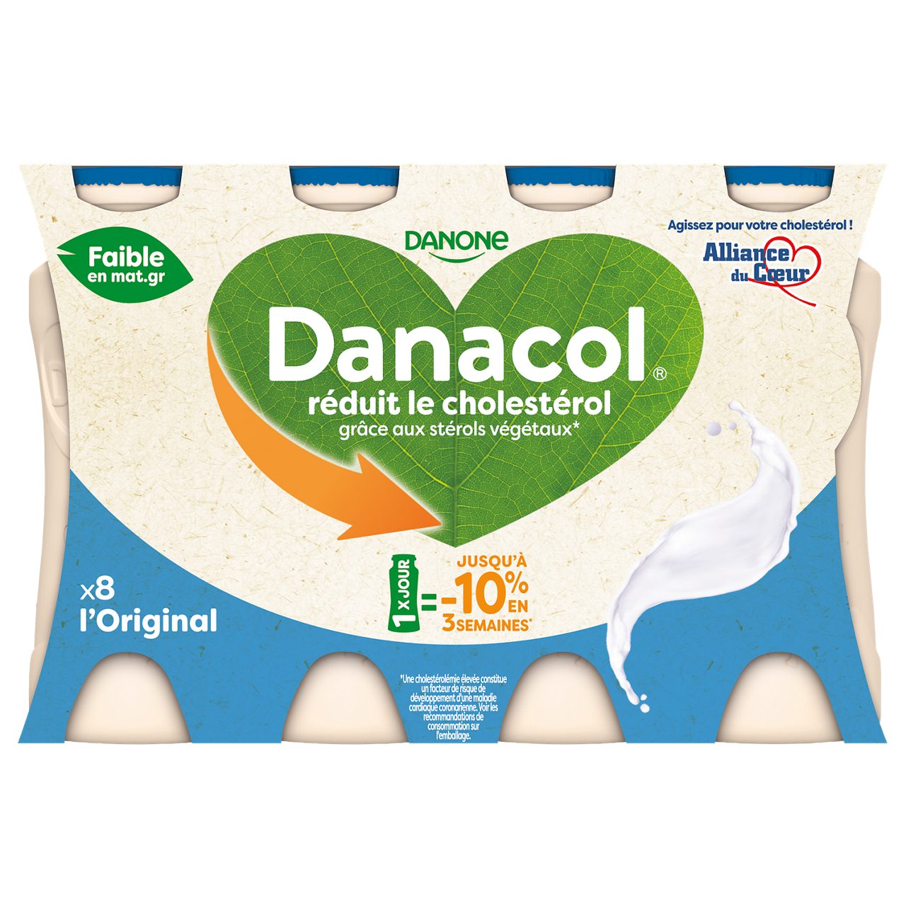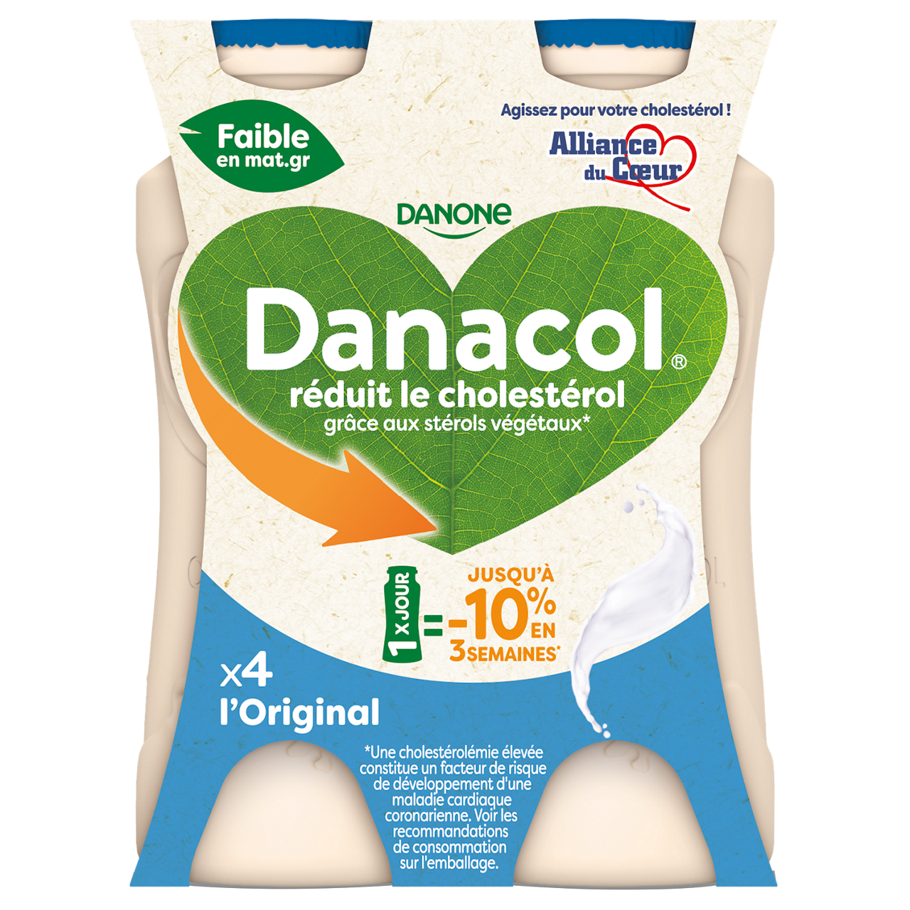 Danacol Nature est une spécialité laitière dont l’effet sur la réduction du cholestérol, grâce aux stérols végétaux, est scientifiquement prouvé*. Les stérols végétaux, qui sont des extraits de plantes, contribuent à la réduction du cholestérol sanguin. Un taux de cholestérol élevé est un facteur de risque de maladies cardiovasculaires. Consommer une bouteille par jour peut réduire jusqu’à 10% de votre taux de cholestérol en seulement 3 semaines*.