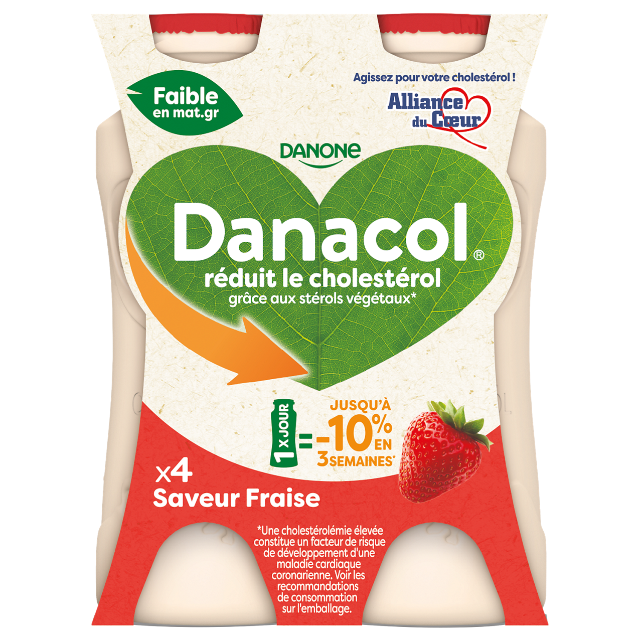 Découvrez Danacol saveur fraise, une spécialité laitière savoureuse dont l’effet sur la réduction du cholestérol, grâce aux stérols végétaux, est scientifiquement prouvé*. Les stérols végétaux sont extraits de plantes et contribuent à la réduction du cholestérol sanguin. Consommer une bouteille par jour peut réduire jusqu’à 10% de votre taux de cholestérol en seulement 3 semaines*.