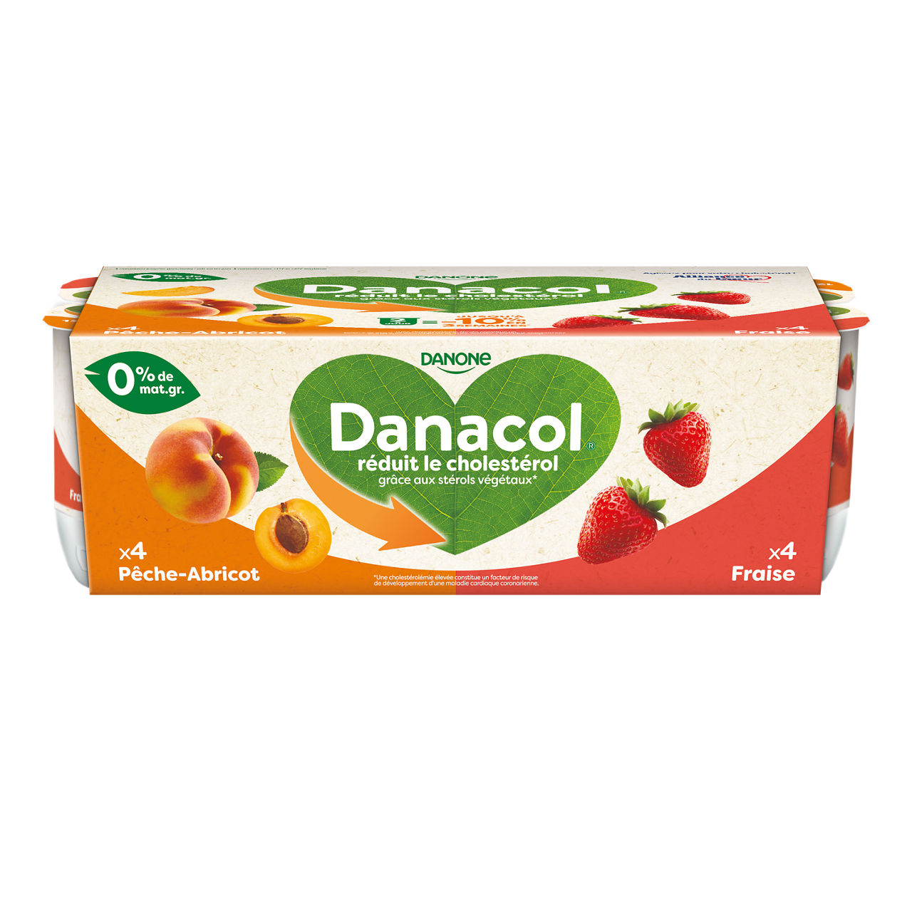 Découvrez Danacol à la pêche & abricot et à la fraise ; une spécialité laitière dont l’effet sur la réduction du cholestérol, grâce aux stérols végétaux, est scientifiquement prouvé*. Les stérols végétaux, qui sont des extraits de plantes, limitent l’absorption du cholestérol dans l’intestin et abaissent par conséquent le taux de cholestérol sanguin. La consommation de deux pots par jour, contenant chacun 0,8g de phytostérols peut réduire jusqu’à 10 % de votre taux de cholestérol en seulement 3 semaines. L'effet se maintient grâce à une consommation quotidienne continue. *